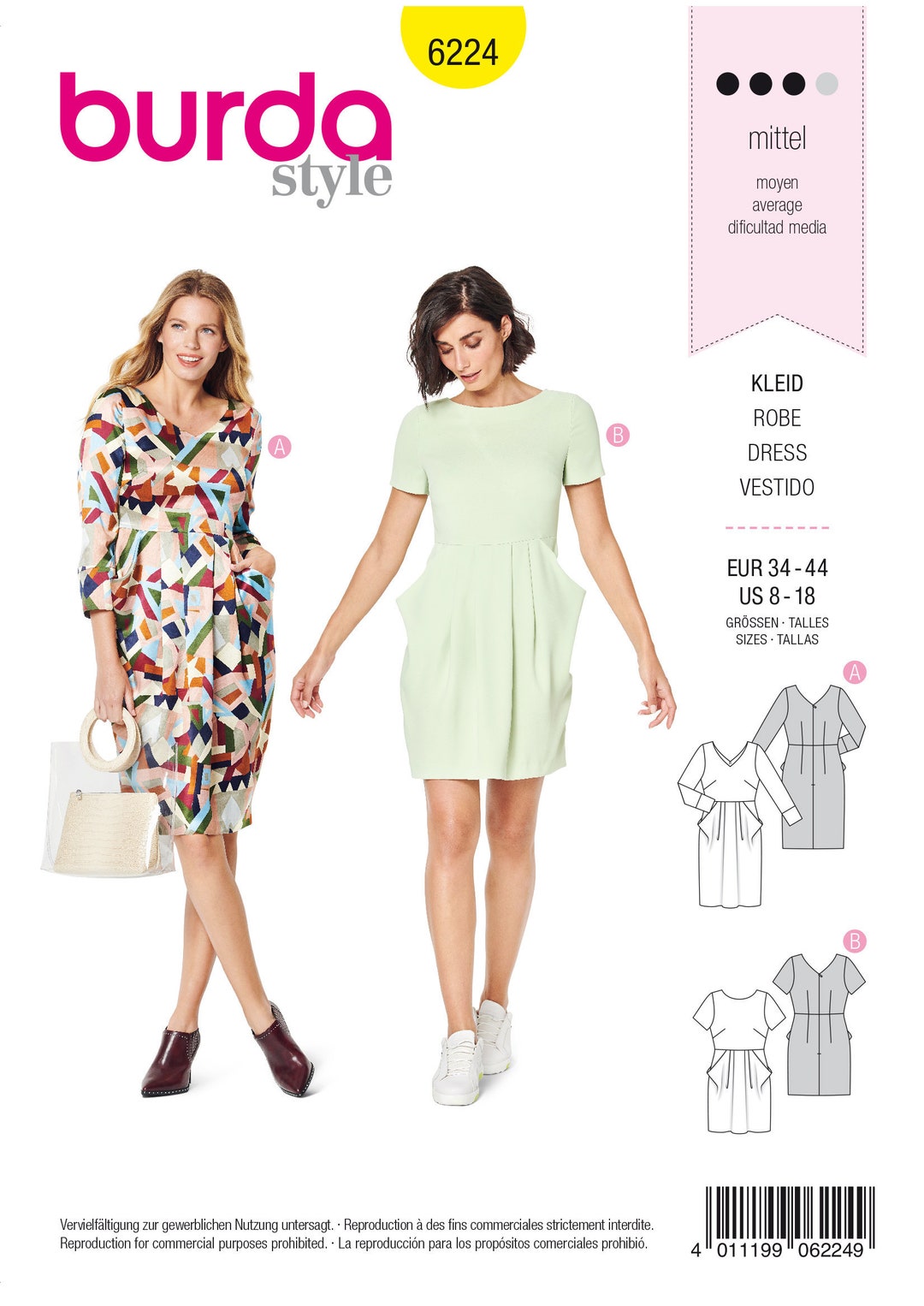 Burda Sewing Pattern 6224 Dress Size 34 44 Ladies Etsy