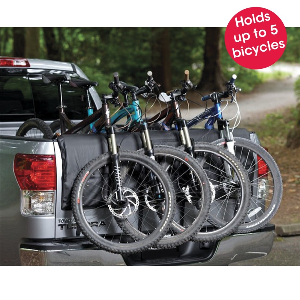 Amazon Com Mid Size Pickup Truck Tailgate Bike Pad Weatherproof Tailgate Pad Rack With Xl Camera Opening Built In Accessories Bags Carries Up To 5 Mountain Bikes E Bikes Bmx Road